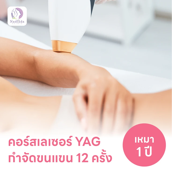 - ค่าคอร์สเลเซอร์กำจัดขนแขน 12 ครั้ง ด้วย YAG Laser (ผู้หญิงเท่านั้น)