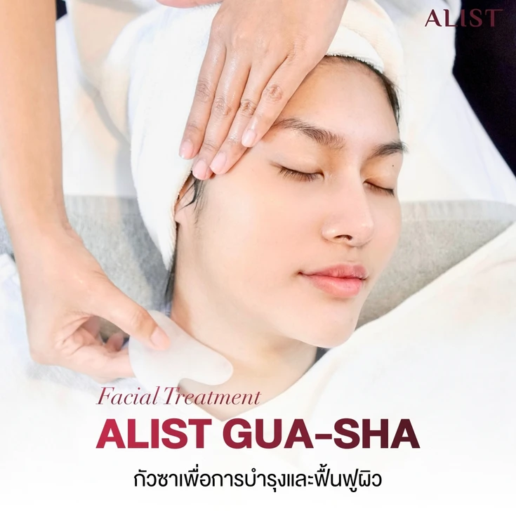 - ค่าโปรแกรมกัวซาหน้า เพื่อการบำรุงและฟื้นฟูผิว (ALIST Gua-Sha Facial Treatment) 6 ขั้นตอน 1 ครั้ง ประกอบด้วย