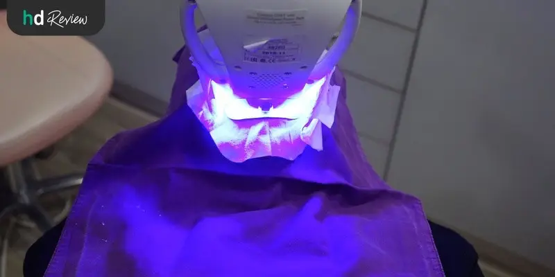 ต่อมาเป็นขั้นตอนการฉายแสง Zoom ลงบนผิวฟัน บริเวณที่ลงน้ำยาเอาไว้แล้ว ซึ่งระหว่างนี้ถ้าไม่ไหวให้ยกมือเรียกผู้ช่วยหรือคุณหมอได้เลย