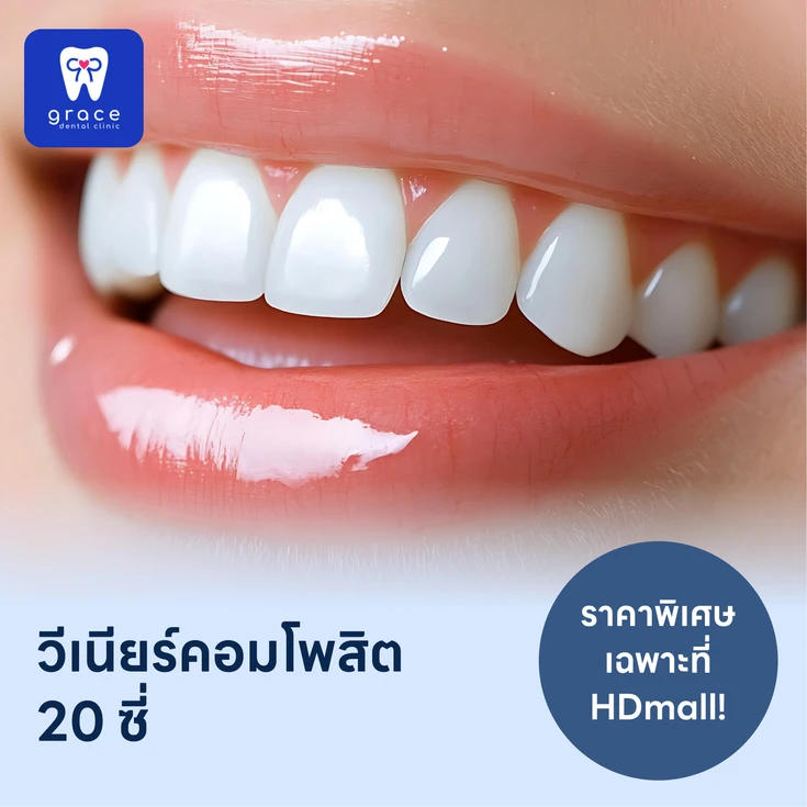 🏥 แพ็กเกจทำวีเนียร์คอมโพสิต 20 ซี่ ที่ คลินิกทันตกรรมเกรซ มอบประสบการณ์การดูแลฟันที่ดี ด้วยการใช้วัสดุคุณภาพสูงที่มีสีเหมือนฟันธรรมชาติ เพื่อทำให้ฟันของคุณดูสวยงามและเป็นระเบียบ