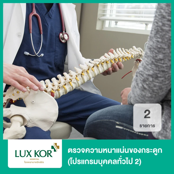 - ค่าตรวจความหนาแน่นของกระดูก 2 ส่วน 2 รายการ (โปรแกรมบุคคลทั่วไป 2) (ทุกช่วงวัย) มีรายการตรวจดังนี้