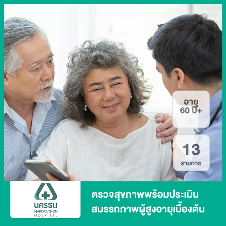 - ตรวจร่างกายและให้คำแนะนำทางด้านสุขภาพ โดยอายุรแพทย์เฉพาะทางด้านผู้สูงอายุ (Physical Examination by Geriatric Medicine Physician)