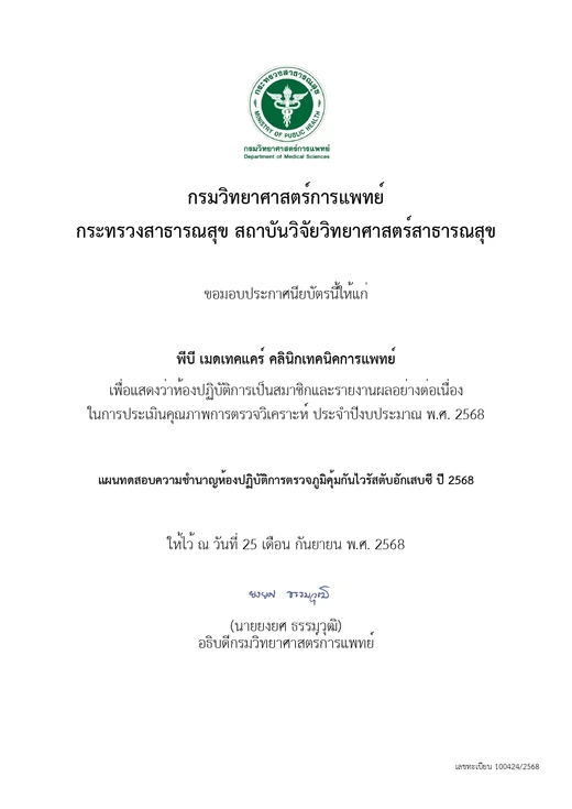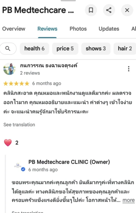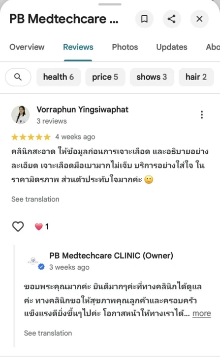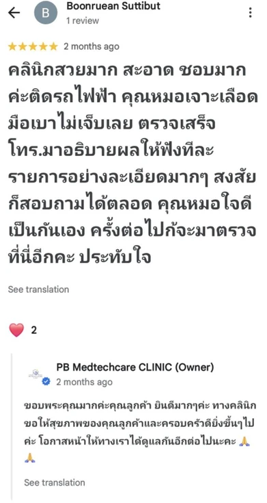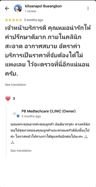 เงื่อนไขการให้บริการ และราคาของ PB Medtechcare Clinic (พีบี เมดเทคแคร์ คลินิกเทคนิคการแพทย์) อาจมีการเปลี่ยนแปลงตามแผนการส่งเสริมการขาย ท่านสามารถตรวจสอบเงื่อนไขการให้บริการ และราคาล่าสุดได้จากแอดมิน HDmall.co.th
