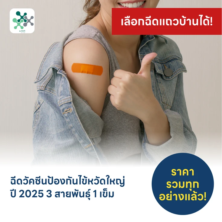 - ค่าฉีดวัคซีนป้องกันไข้หวัดใหญ่ 2025 3 สายพันธุ์ 1 เข็ม (6 เดือน - 14 ปี)