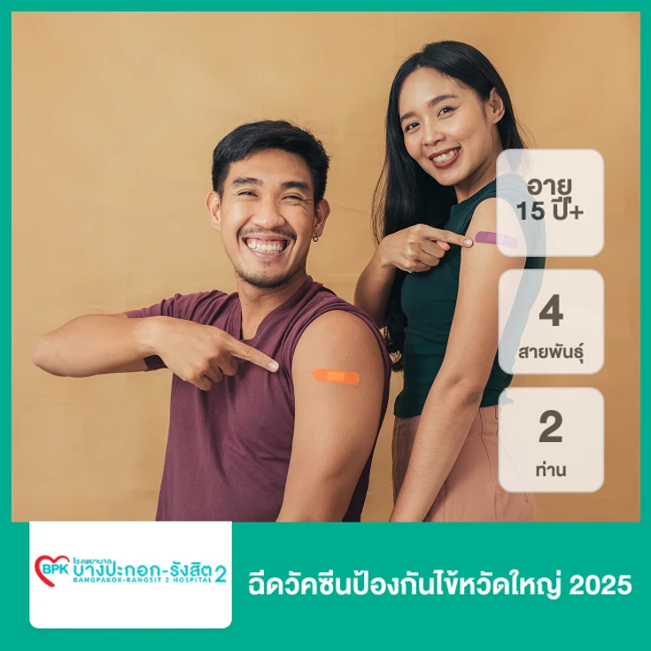 - ค่าฉีดวัคซีนป้องกันไข้หวัดใหญ่ 2025 4 สายพันธุ์ สำหรับ 2 ท่าน (15 ปีขึ้นไป)