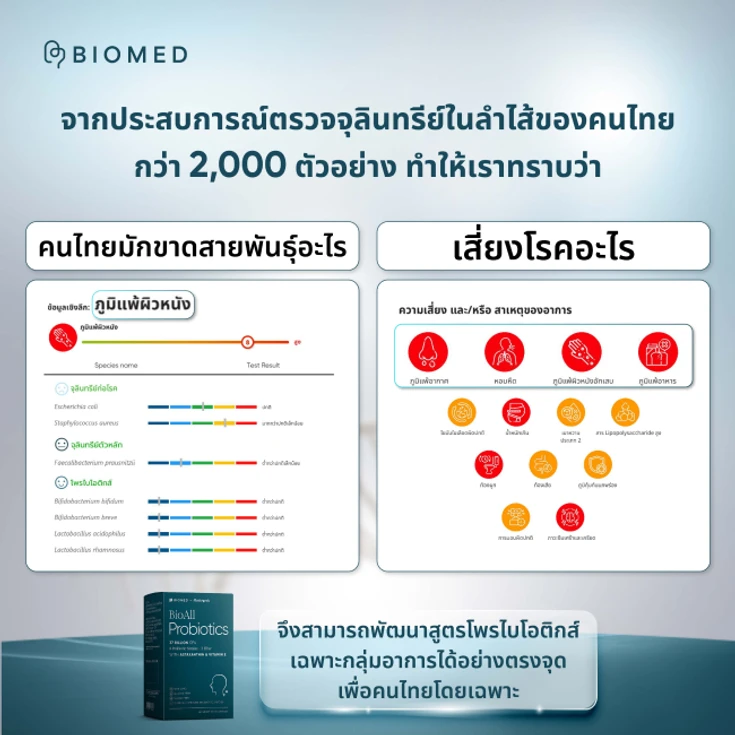 - ผู้ที่ต้องการ complete solution: ตรวจโพรไบโอติกส์ + โพรไบโอติกส์สูตรที่เหมาะสม