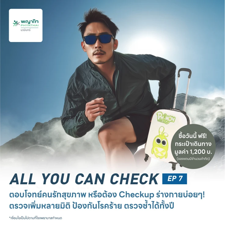 💼 โปรแกรมตรวจสุขภาพ All You Can Check EP. 7 (ตรวจซ้ำได้ทั้งปี + เลือกตรวจเฉพาะทางได้ 6 รายการ) เปิดโอกาสให้คุณได้ตรวจสุขภาพหลากหลายรายการ พร้อมเลือกตรวจเฉพาะทางได้ตามต้องการ และกลับมาตรวจซ้ำได้ตลอดทั้งปี เหมาะกับผู้ที่ต้องการเฝ้าระวังสุขภาพเป็นพิเศษ เช่น ผู้ที่มีโรคประจำตัว ผู้สูงอายุ หรือคนที่ต้องการปรับเปลี่ยนพฤติกรรมเพื่อคุณภาพชีวิตที่ดีขึ้น