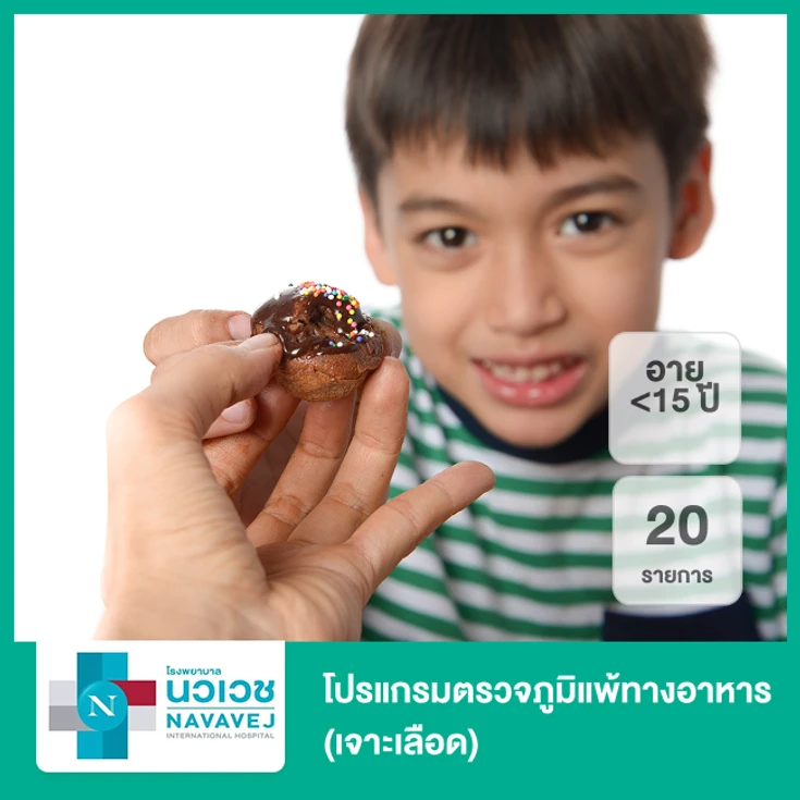 - ค่าโปรแกรมตรวจภูมิแพ้ทางอาหาร 20 รายการ (น้อยกว่า 15 ปี เจาะเลือด) มีรายการดังนี้