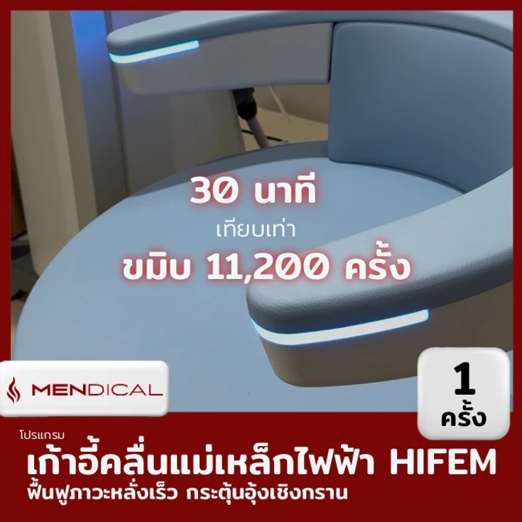 - ค่าโปรแกรมฟื้นฟูภาวะหลั่งเร็ว กระตุ้นอุ้งเชิงกราน ด้วยคลื่นแม่เหล็กไฟฟ้า (HI-FEM) 1 ครั้ง