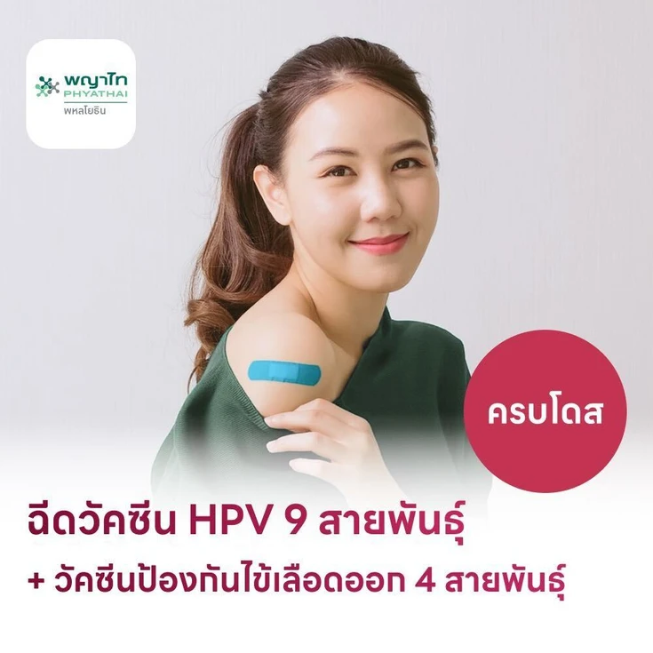 - ค่าฉีดวัคซีน HPV ป้องกันมะเร็งปากมดลูก ชนิด 9 สายพันธุ์ 3 เข็ม + ฉีดวัคซีนป้องกันโรคไข้เลือดออก 4 สายพันธุ์ 2 เข็ม (ครบโดส) สำหรับผู้ที่อายุ 15 ปีขึ้นไป