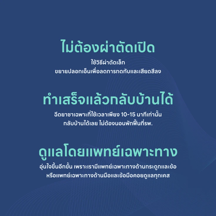 ผ่าตัดเล็กเจ็บน้อย ไม่น่ากลัว ฉีดยาชาเฉพาะที่ใช้เวลาแปปเดียว หลังผ่าใช้งานมือและพักฟื้นที่บ้านได้เลย