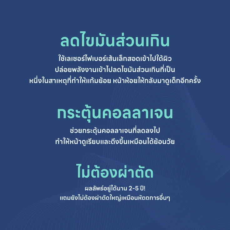 • ยกกระชับลึกถึงชั้นไขมัน กระตุ้นคอลลาเจนจากภายใน