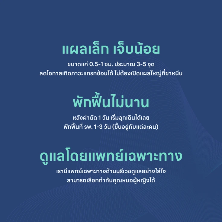 - หลังผ่าตัด 1 วัน สามารถลุกเดินได้เลย