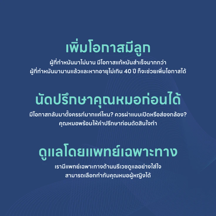 - แก้หมันผู้หญิง ยิ่งแก้เร็วโอกาสแก้หมันสำเร็จยิ่งสูง